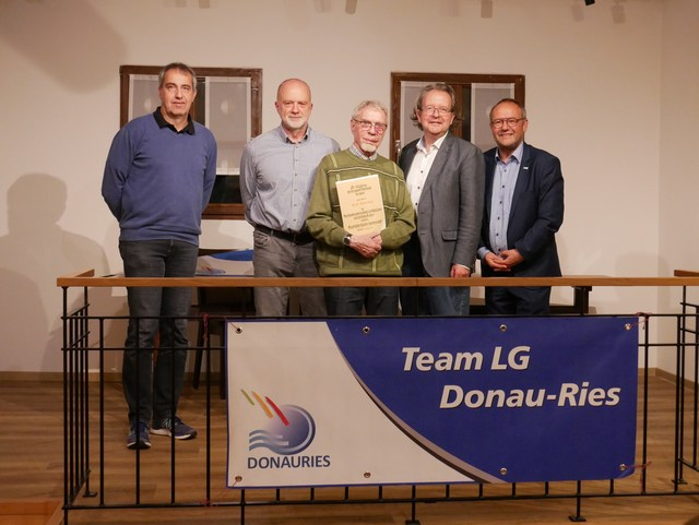 Harburg/Donauwörth Im Rahmen der Jahreshauptversammlung der LG Donau-Ries wurde das Gründungsmitglied der LG und der langjährige Trainer des VSC Donauwörth, Rolf Behringer mit der der Verdienstnadel Gold mit Brillanten und großem Kranz des BLSV ausgezeichnet. In seiner Laudatio skizierte der Kreisvorsitzende des BLSV, Roland Pickhard, die über 40 Jahre andauernde Trainerlaufbahn des von seinen Sportlern liebevoll genannten „Coach“ und das hohe ehrenamtliche Engagement für den VSC Donauwörth und die LG Donau-Ries.