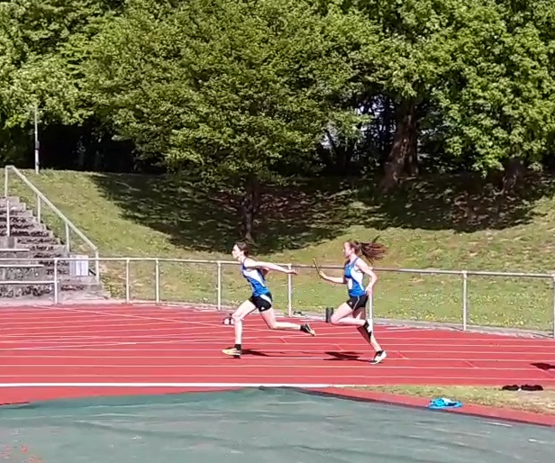 Bei sommerlichen Temperaturen eröffneten die 4x100m-Staffeln die Veranstaltung. Die Teilnehmerzahlen waren heuer auffallend hoch, so dass für die 4 gemeldeten Staffeln der LG auch „ausreichend“ Konkurrenz vorhanden war. Für die erste Überraschung sorgten dabei die Mädchen U18 mit Jana van Noord, Mia Bergmiller, Marion Kleinle und Pia Häselhoff. Mit ihrer Zeit von 52,01 Sekunden setzen sie sich deutlich ab und schafften gleich beim ersten Anlauf die Qualifikation für die Bayerischen Meisterschaften. Im weiteren Wettkampfverlauf kam es dann wiederholt zu Zeitverschiebungen, was die Vorbereitung in den technischen Disziplinen beeinträchtigte. Trotzdem erreichte der 14-jährige Lucas Pohl vom VSC Donauwörth im Speerwurf mit dem 600g schweren Gerät eine neue Bestleistung von 29,23 Meter. Parallel warf Julia Vogtmann vom TSV Mönchsdeggingen in der gleichen Alterklasse den 1-kg schweren Diskus auf 27,46 Meter und sicherte sich bei ihrem ersten Wettkampf der Saison gleich die Teilnahme an den Bayerischen Einzel im Juli. Dasselbe gelang im Anschluss im Langsprint Tamara Feder (TSV Rain). Trotz schwerer Beine verbesserte sie sich über 300 Meter deutlich auf eine Zeit von 45,64 Sekunden.