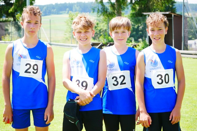 Im Vierkampf (Weit, 75m, Hoch und Ball) gewannen die Mädchen U14 mit Annalena Viebranz (VSC Donauwörth), Jeccisa Rauter und Jule Beck (TSV Mönchsdeggingen), Emma Krämer, Finja Märtl und Tessa Melzer (TSV Rain) in der Mannschaftswertung den Kreismeistertitel. Jule Beck setzte an dem Tag zum Höhenflug an und steigerte sich im Hochsprung auf 1,28m. Dazu gelang ihr im Weitsprung (4,16m) der weiteste Satz in ihrer Altersklasse und so wurde sie Vizemeisterin bei den W13. Bei den M13 erreichten Fabian (2. Platz mit 1459 Pkt) und Jonas Kuznik (3. Platz mit 1411 Pkt) vom TSV Rain Podestplätze. Im Hochsprung überzeugte dabei der gleichaltrige Moritz Roßmann vom VSC Donauwörth mit einer tollen Leistung von 1,28 Metern. Mit dem 200g schweren Ball überzeugte hier Julius Mayr (28,0 Meter).