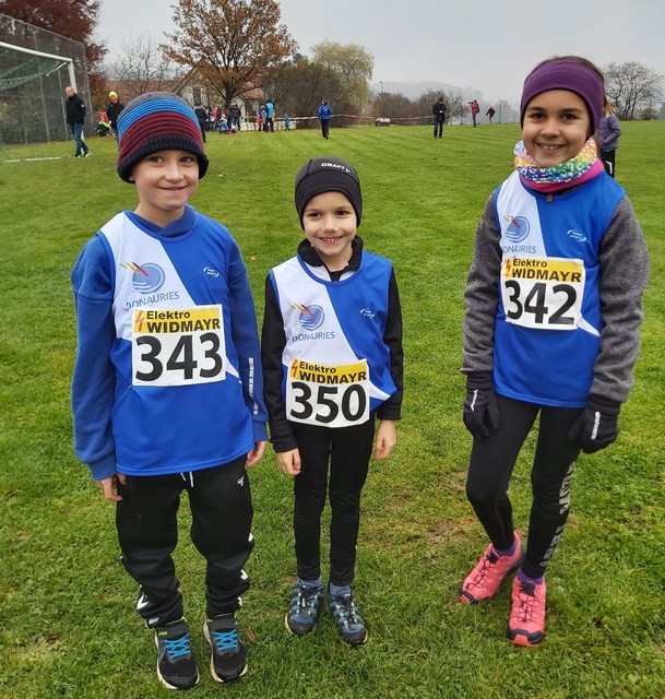 Nach einer Sportplatzrunde geht es auf einem Kiesweg bergab, anschließend eine Runde auf einer Wiese und dann über Feld- und Wiesenwege steil bergauf wieder zum Sportplatz zurück. Durch das kühle und feuchte Wetter eine nicht ganz einfache Aufgabe, da der Untergrund nass und matschig war. Für die LG Donau-Ries traten 6 Triathleten des TSV Harburg an, um sich so auf die kommende Saison für die Laufstrecke vorzubereiten. In der jüngsten Altersklasse starteten Maya Joachim (Platz 6 W9), Daniel Weiland (Platz 3 M8), Lorenz Owert (Platz 6 M8) und Maxime Westphal (Platz 8 M8). Die drei Jungs (Daniel, Lorenz und Maxime) sicherten sich den zweiten Platz in der Mannschaftswertung U10 männlich hinter der LG Augsburg. In der Altersklasse M11 war Joel Westphal am Start. Er erkämpfte sich im Zielsprint in einer Zeit von 5:21 Minuten den Vizemeistertitel. Bei den 13-jährigen schaffte es Luca Schreitmüller in einer Zeit von 5:13 Minuten als Erster seines Jahrgangs nach einer Runde ins Ziel und wurde damit schwäbischer Meister Crosslauf M13.