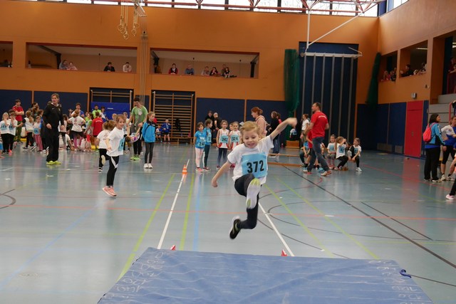 Die Kinder und Jugendlichen maßen sich in Anlehnung an das Wettkampfsystem Kinderleichtathletik in Disziplinen wie Scherhochsprung, beidarmiger Medizinballstoß, Sprint aus dem Liegen und Zielweitsprung. Höhepunkt der Veranstaltung waren die abschließenden Rundenläufe, die als Verfolgungsrennen durchgeführt wurden. Glücklich und erschöpft kamen die Kinder unter dem Applaus der Zuschauer auf der vollbesetzten Tribüne ins Ziel. Großen Jubel gab es auch beim Zielweitsprung in Fahrradreifen, bei dem die Kinder über sich hinauswuchsen und lautstark zu Bestleistungen motiviert wurden.