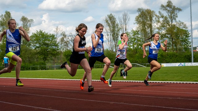 Bei stabilem Wetter erfolgte pünktlich nach Zeitplan der erste Startschuss für die 300m und 400m Hürdenläufe und im Anschluss ging es weiter mit den Kurzsprints. Über 300m Hürden konnte sich der Donauwörther Moritz Roßmann mit 51,12sek über eine neue Bestleistung freuen. Bei den 100m überzeugte besonders U18-Athletin Katharina Rupp aus Nördlingen für die LG Donau-Ries, indem sie ihre Bestzeit auf 13,42sek drückte, während ihr Vereinskollege Felix Herrmann bei den Männern mit 11,67sek seine Zeit von letzter Woche bestätigte. Über 75m überzeugten Viktoria Zajitschek in der Altersklasse W13 und Marie Weinberger bei den W12 vom gastgebenden VSC und waren jeweils die beste Athletin aus Sicht der LG.